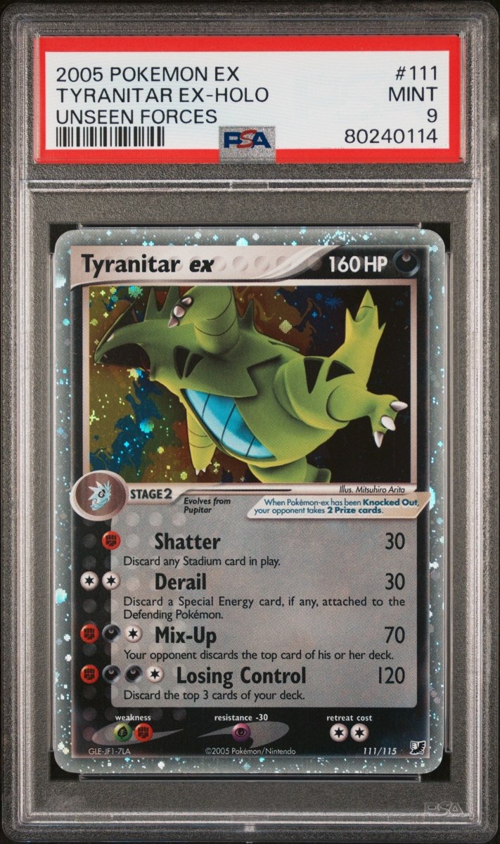 2005 POKEMON EX UNSEEN FORCES #111 TYRANITAR EX-HOLO UNSEEN FORCES PSA 9 CERT #80240114